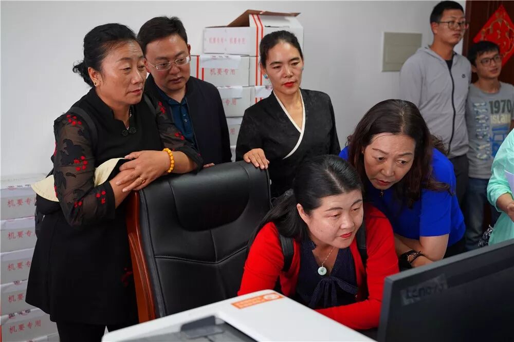 ▲在西藏自治区党委网信办,考察团听取工作人员讲解,认真翻阅学习资料