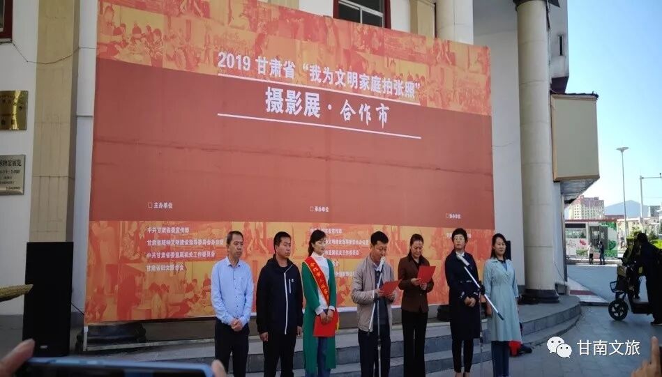 2019年8月29日上午,由中共甘肃省委宣传部、甘肃省精神文明建设指导委员会办公室、中共甘肃省委直属机关工作委员会、甘肃省妇女联合会主办,中共合作市委宣传部、甘南州文化馆承办的2019甘肃省“我为文明家庭拍张照”摄影展合作市巡展在甘南州文化馆三楼开展。本次参加巡展活动的有州市有关领导及社会各界人士200余人。开展仪式上由文明家庭代表做了简单的发言。此次展览的百幅家庭照片,旨在通过展览,教育和引领广大干部群众积极向文明家庭学习和看齐意识,重视自身家庭教育,弘扬中华传统美德,推动爱国爱家、相亲相爱、向上向善、共建共享的社会主义家庭文明新风尚。展出的照片中既有弘扬美德、创新创业、爱岗敬业的奋斗奉献之家,也有尊老爱幼、互敬互爱、倡导文明健康的新风之家,也有面对人生重大变故,相互扶持、相濡以沫、患难与共的和睦之家,展示了热心公益、奉献社会的高尚情怀。